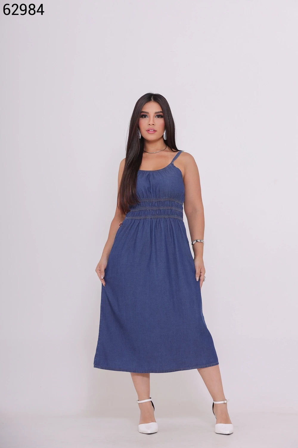 VESTIDO FEMININO LONGO ALÇA GROSSA LASTEX CAMBOS JEANS
