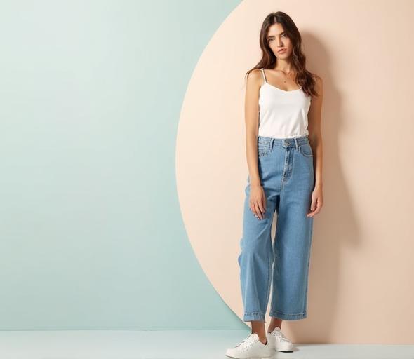 VESTIDO MIDI DECOTE V LASTEX FEMININO ALÇA CAMBOS JEANS